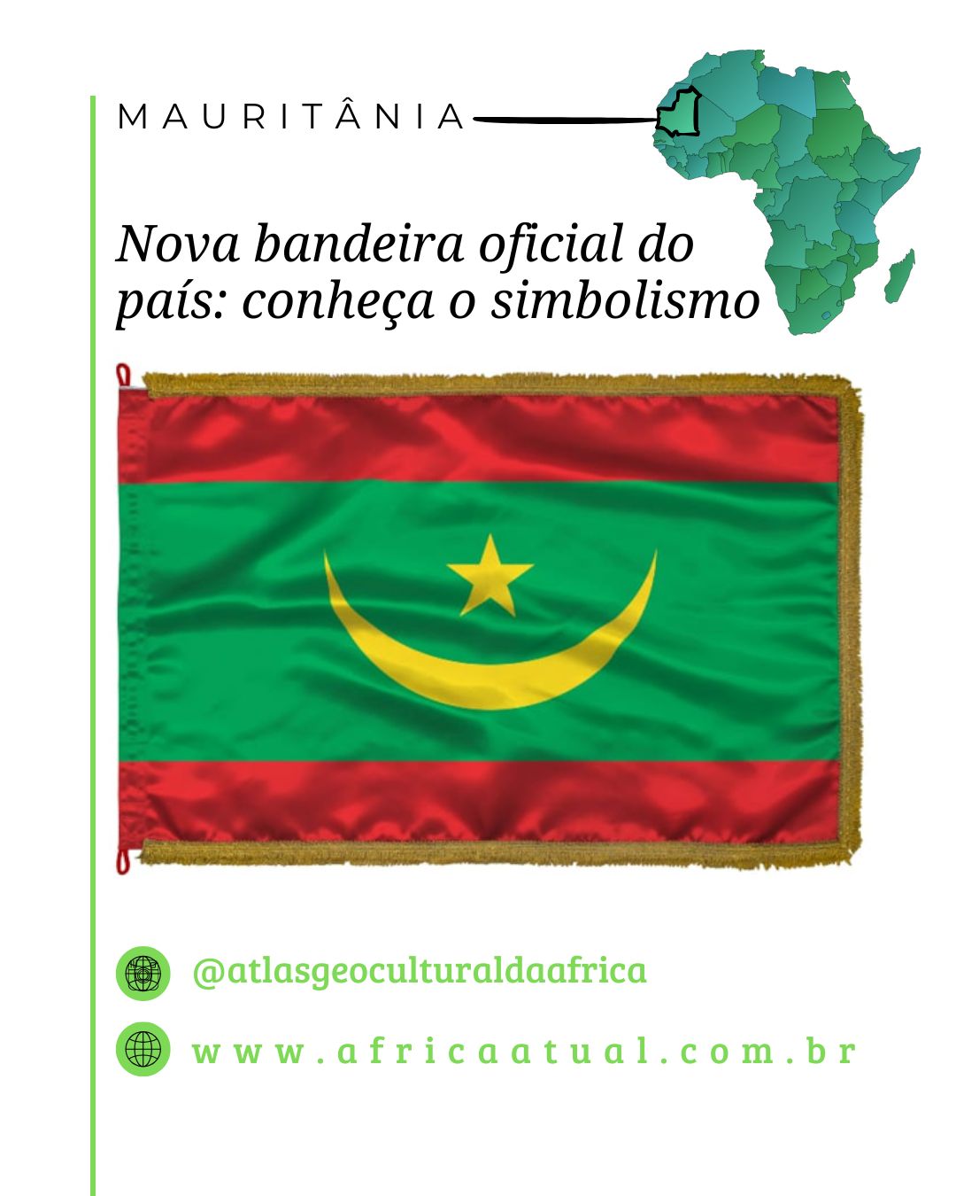 A bandeira atual da Mauritânia consiste num campo verde com uma estrela e crescente dourados, com duas faixas vermelhas horizontais na parte …
